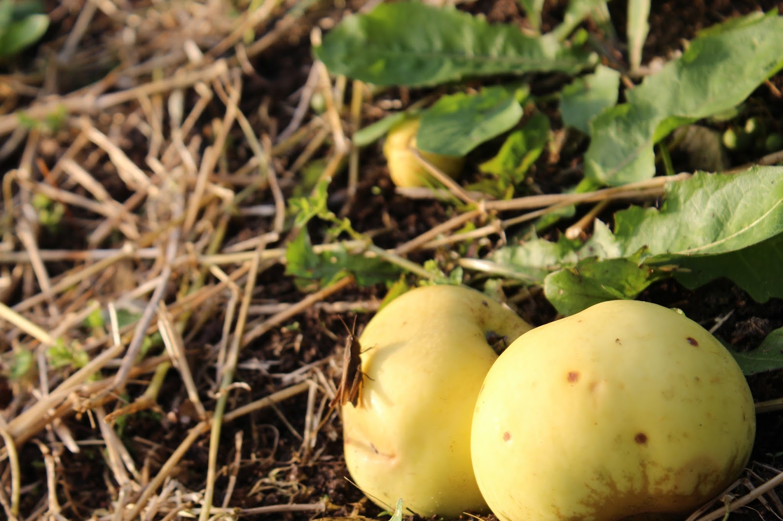 А с другой яблони. А яблочки на них ма-а-а-ленькие, впору нашему гному. Собрали немного для поделки нашей марафонской.